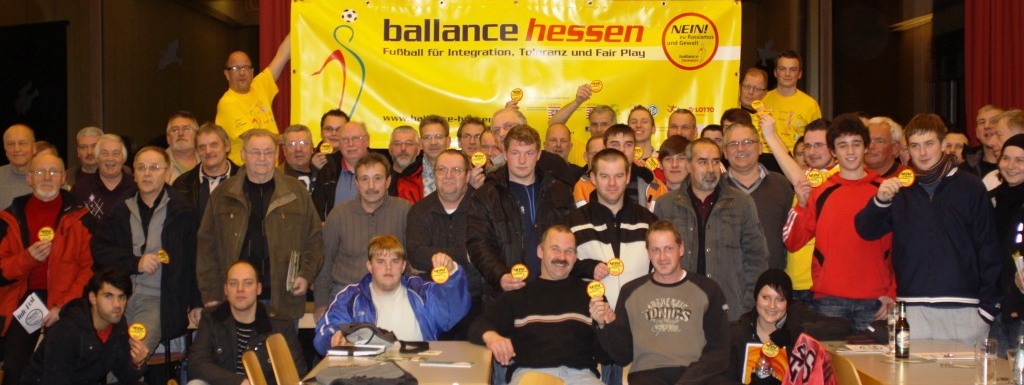 Im Rahmen der monatlichen Pflichtversammlung der Schiedsrichtervereinigung Gießen stand im Bürgerhaus Kleinlinden die Vorstellung der Kampagne „Ballance Hessen“ – NEIN zu Rassismus und Gewalt“ auf der Tagesordnung. Referent Dr. Michael Imhof stellte als Mitglied der Kommission für Integration und Gewaltprävention das im Jahre 2006 ins Leben gerufene Projekt dar, mit dem der Hessische Fußball-Verband ein deutliches Zeichen gegen Rassismus und Gewalt im Fußballsport gesetzt hat. Da zu einem Fußballspiel neben den beiden Mannschaften auch die Schiedsrichter gehören, haben sich mittlerweile elf Schiedsrichtervereinigungen in Hessen der Kampagne angeschlossen. Jüngstes Mitglied ist dabei nun die Giessener Schiedsrichtervereinigung. Als äußeres Zeichen werden die teilnehmenden Schiedsrichter des Fußballkreises Gießen zukünftig das Logo von „Ballance Hessen“ auf ihrer Schiedsrichterkleidung tragen.